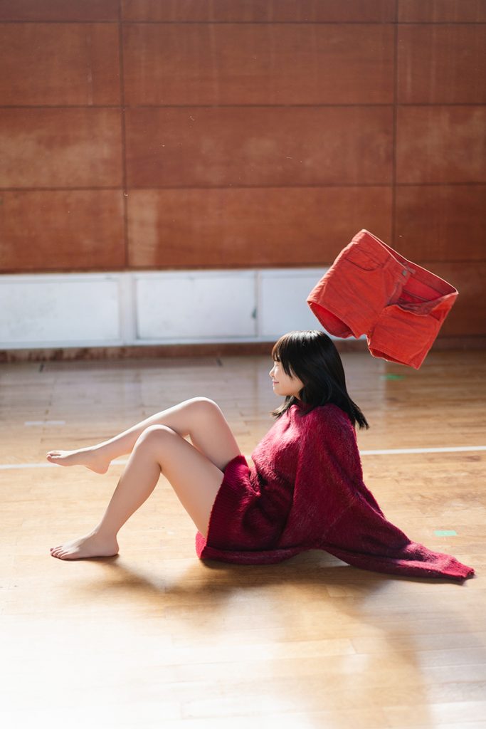 今作は「範囲が広すぎるかくれんぼ。」をテーマに撮影。のどかな海沿いの町で、小柄な体を生かして自動販売機の隙間に隠れたり、建物の柱に隠れたり、体育館のロッカーに隠れたり、民宿の押し入れに隠れたり、カーテンの裏に隠れたり……。いろんな場所に隠れて、全然見つからないから飽きて隠れるのをやめて、見つかったと思ったら今度は全力で走り出して。小動物のような愛くるしさが前面に伝わる作品に仕上がった。